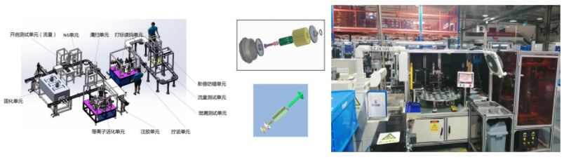 產(chǎn)線自動完成的裝配工作包括:部件扭力控制擰緊,部件壓裝組合,部件注膠粘接。